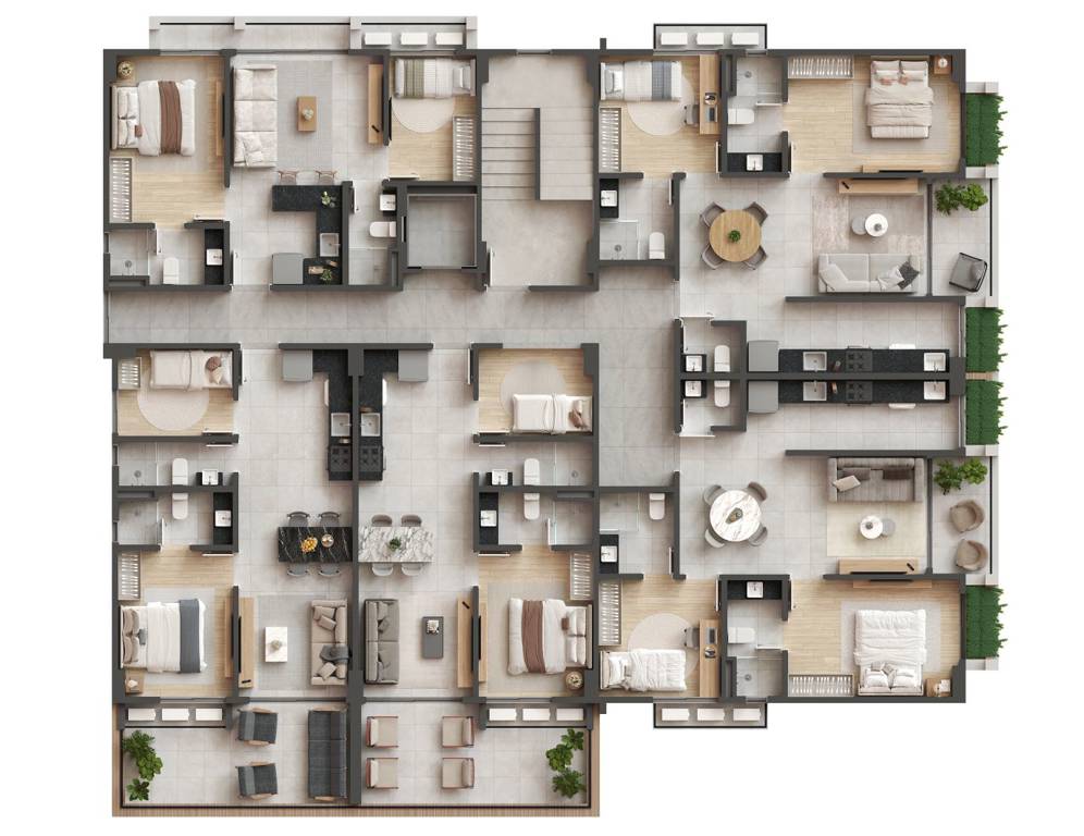 O Green Park é um lançamento de médio padrão com apartamentos de 1 e 2 quartos, variando entre 49m² e 65m², criados para oferecer conforto, funcionalidade e um estilo de vida moderno.