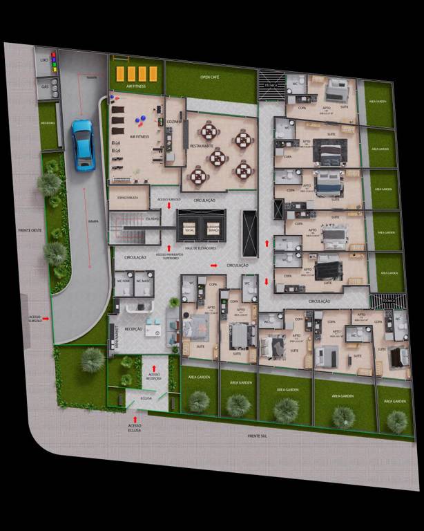 O condomínio oferece lazer completo e serviços de alto nível: piscina com borda infinita, academia equipada, espaço gourmet, salão de festas, restaurante, lavanderia, minimercado interno, recepção 24h. Tudo isso para você viver tranquilo, seguro e com estilo.
