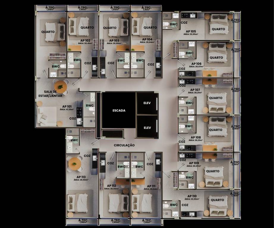 O Park Vision Oceania é um pré-lançamento de médio padrão, pensado para quem busca viver bem e investir com segurança. São Studios de 1 e 2 quartos, com plantas inteligentes de 20m² a 66m², projetadas para oferecer conforto, funcionalidade e uma experiência de moradia moderna.